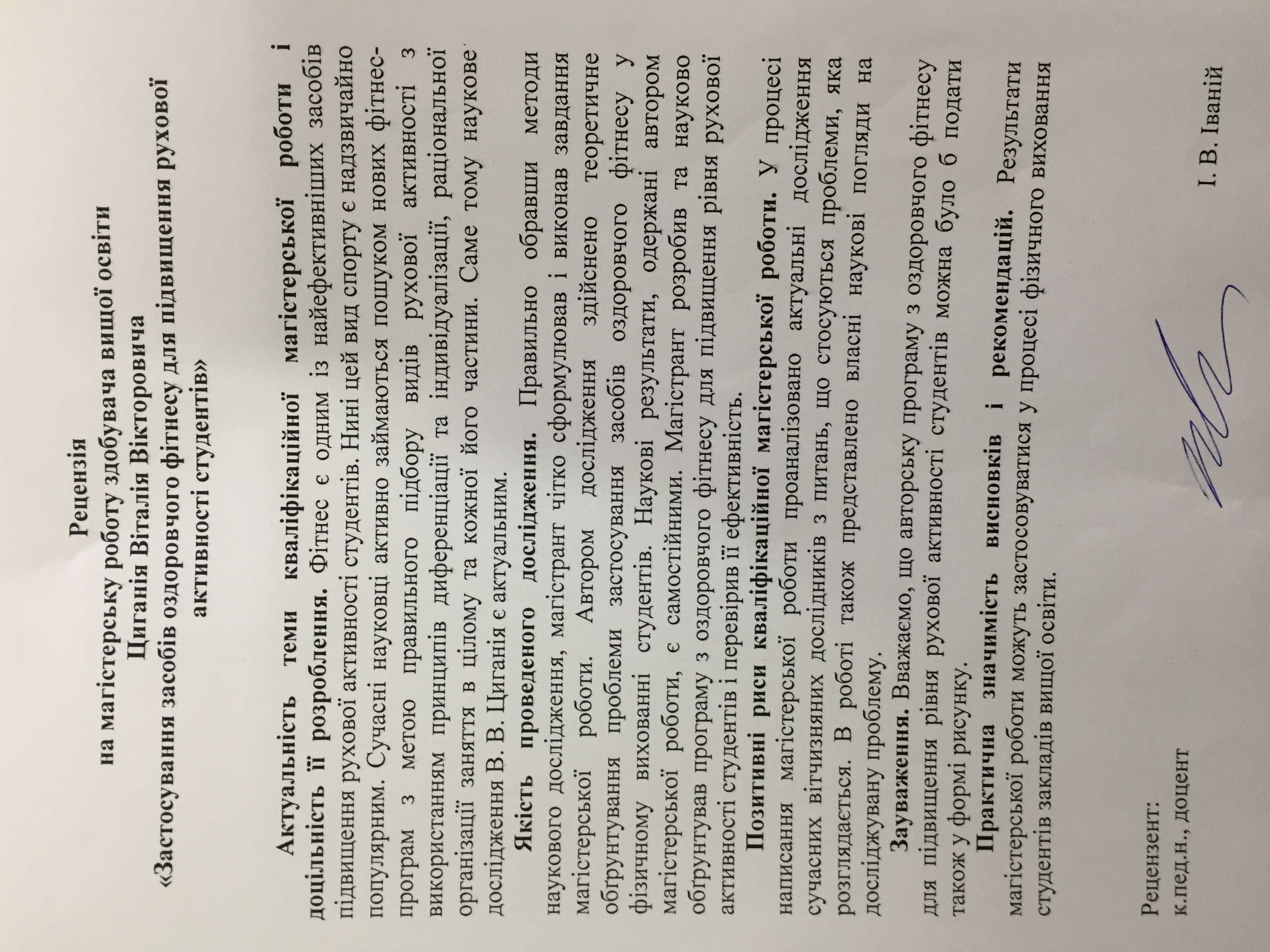 Циганій, В. В. Застосування засобів оздоровчого фітнесу для підвищення рухової активності студентів [Текст] : магістер. робота / В. В. Циганій ; науковий керівник А. В. Леоненко. – Суми : СумДПУ ім. А. С. Макаренка, 2020. – 56 с.