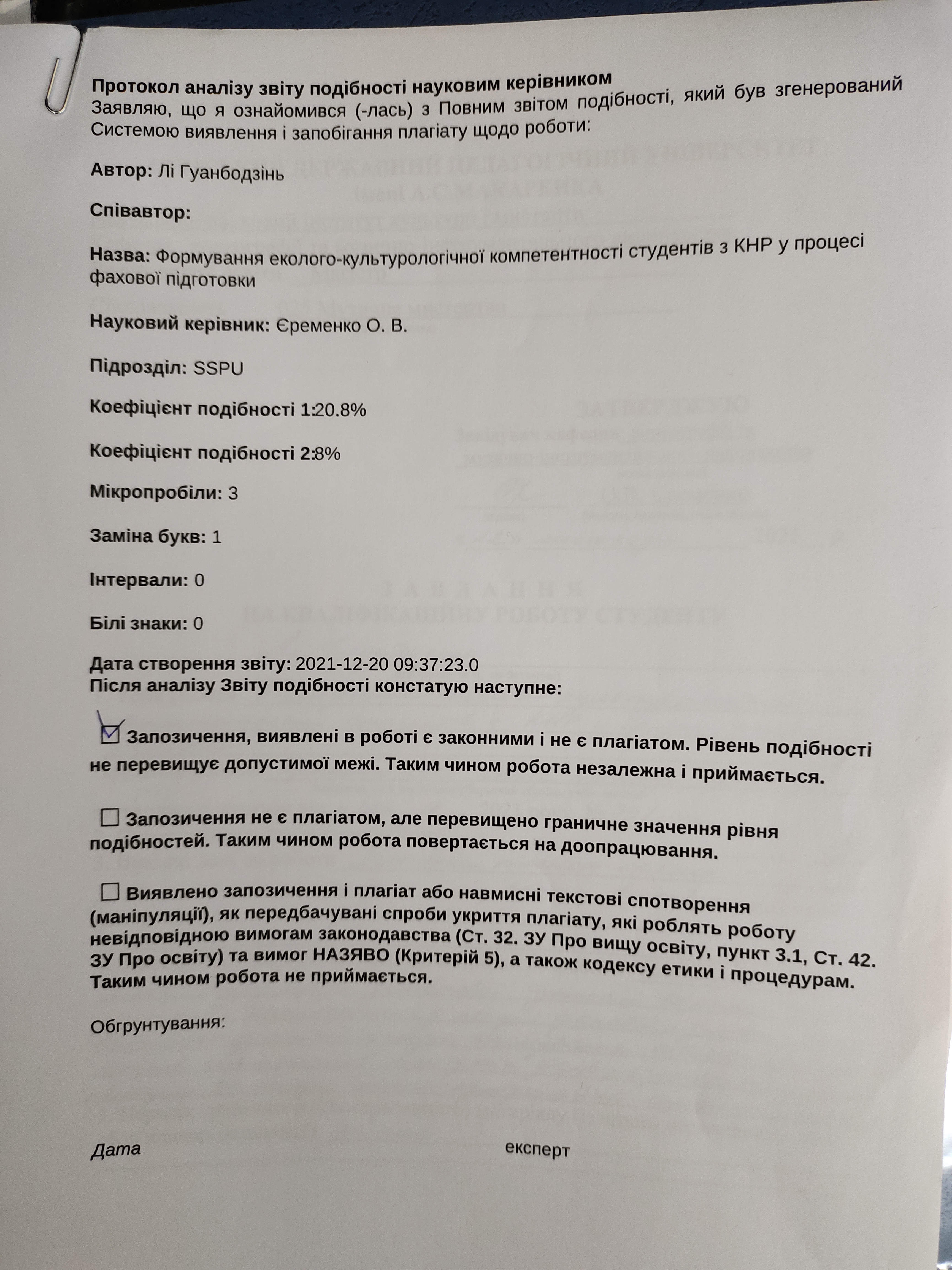Лі Гуанбодзінь Формування еколого-культурологічної компетентності студентів з КНР у процесі фахової підготовки [Текст] : кваліфікаційна робота на здобуття освітнього ступеня магістр / Лі Гуанбодзінь, науковий керівник О. А. Єременко. – Суми : СумДПУ ім. А. С. Макаренка, 2021. – 64 с.