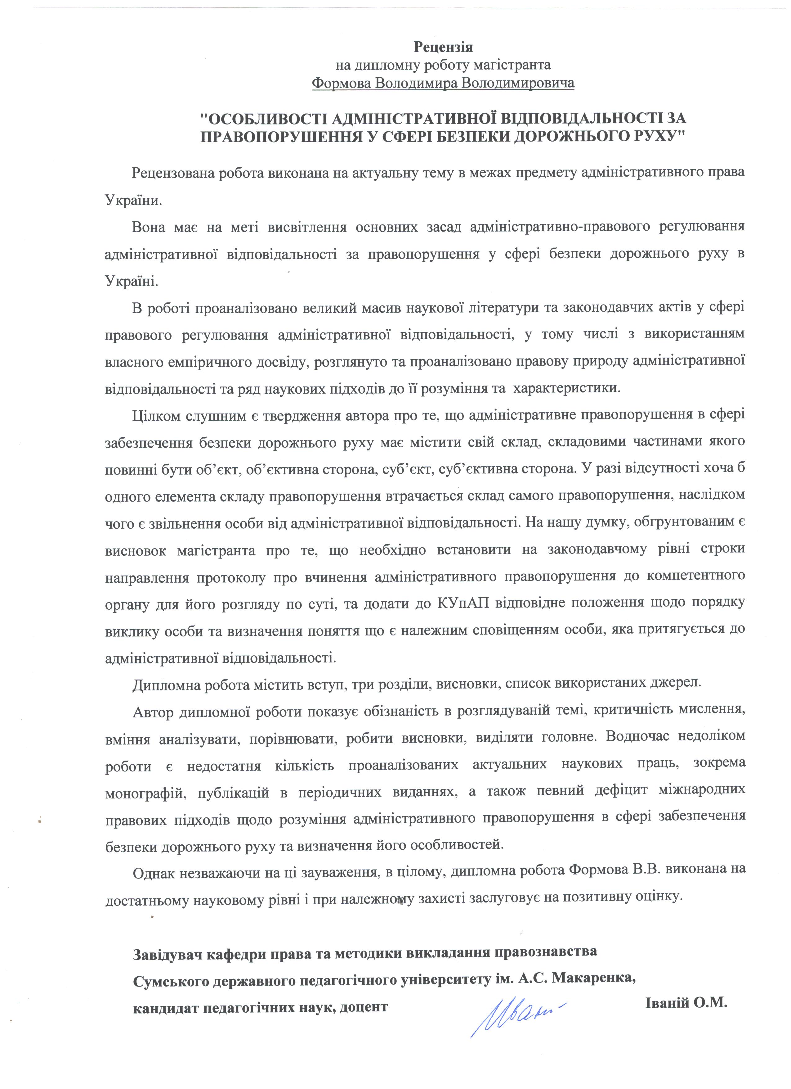 Формов, В. В. Особливості адміністративної відповідальності за правопорушення у сфері безпеки дорожнього руху [Текст] : магістер. робота / В. В. Формов ; науковий керівник А. М. Апаров. – Суми : СумДПУ ім. А. С. Макаренка, 2020. – 73 с.