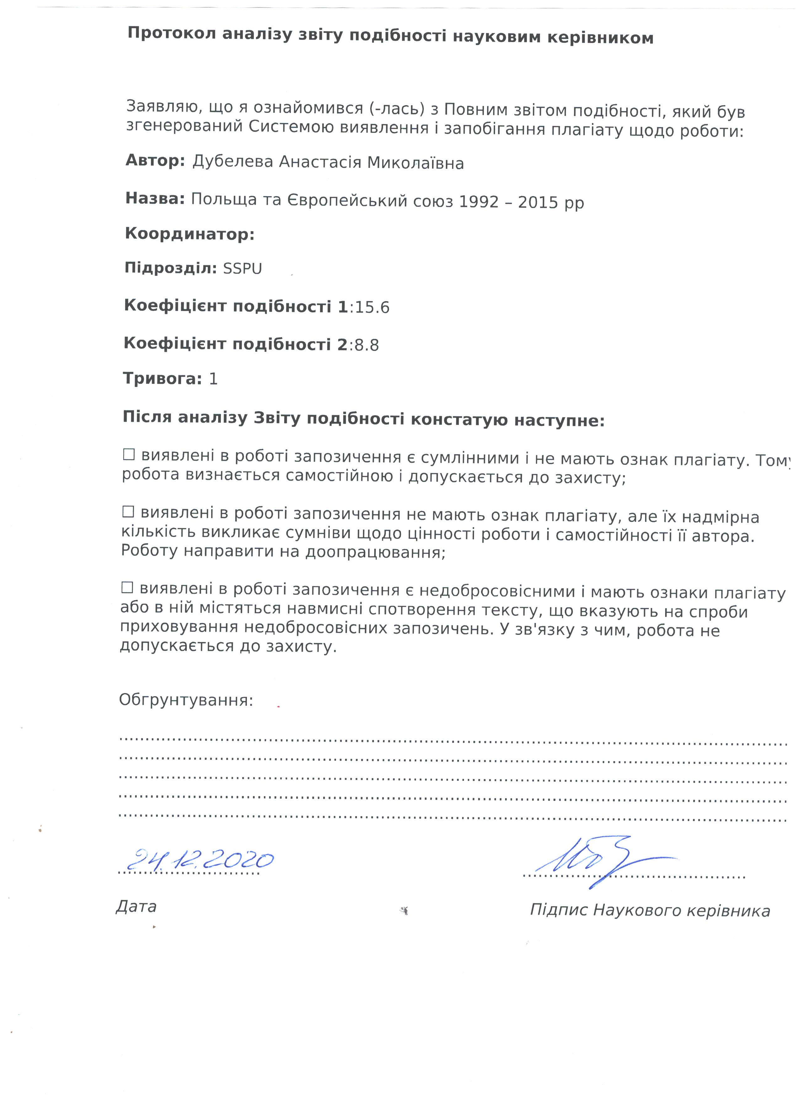 Дубелева, А. М. Польща та Європейський союз 1992 – 2015 рр. [Текст] : магістер. робота / А. М. Дубелева ; науковий керівник І. В. Горобець. – Суми : СумДПУ ім. А. С. Макаренка, 2020. – 72 с.