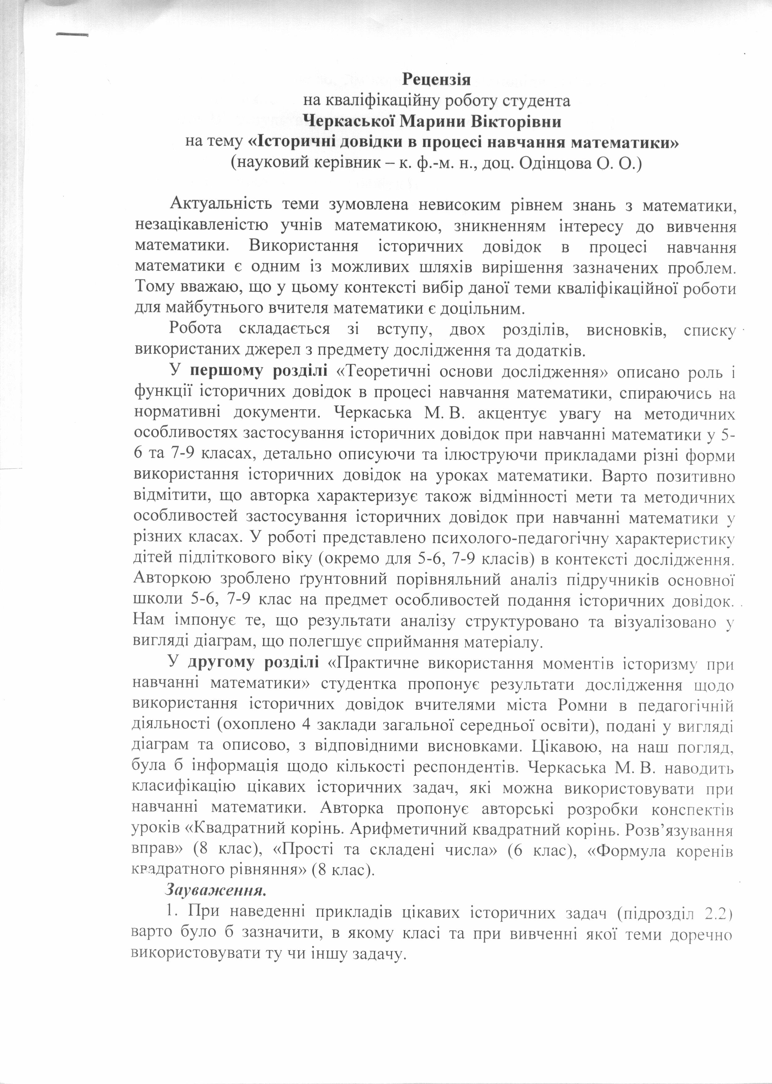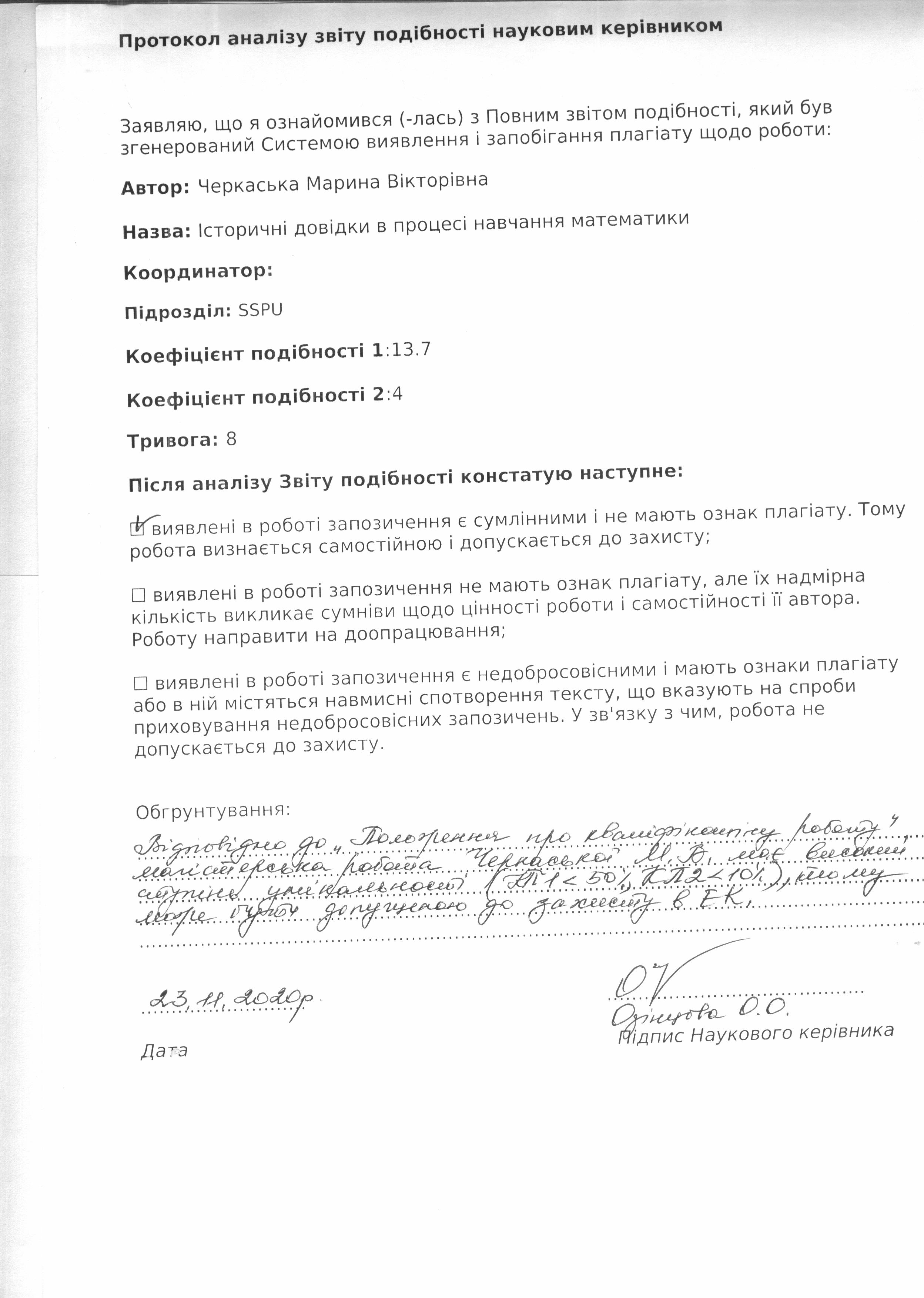 Черкаська, М. В. Історичні довідки в процесі навчання математики [Текст] : магістер. робота / М. В. Черкаська ; науковий керівник О. О. Одінцова. – Суми : СумДПУ ім. А. С. Макаренка, 2020. – 99 с.