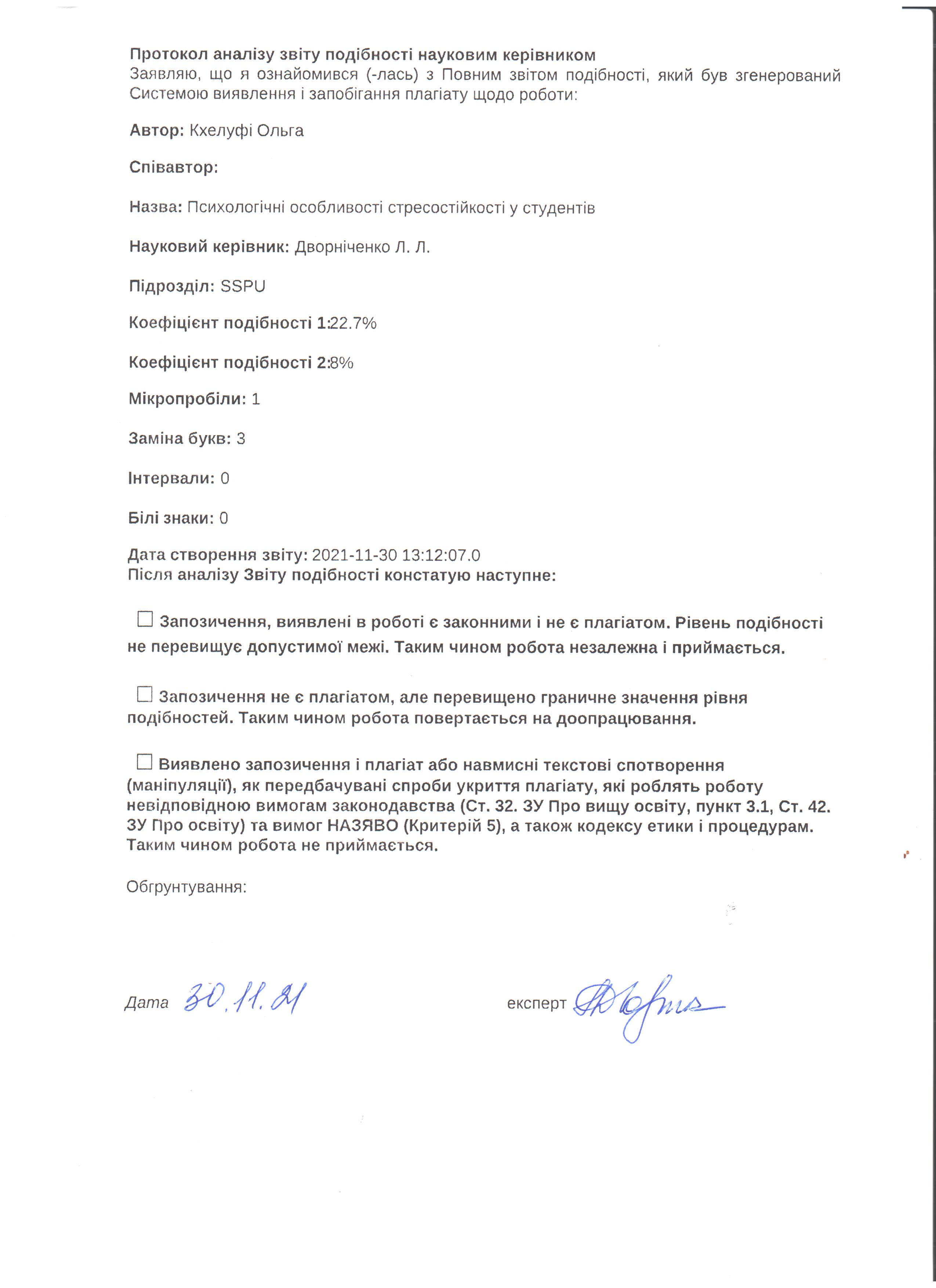 Кхелуфі О. Психологічні особливості стресостійкості у студентів [Текст] : кваліфікаційна робота на здобуття освітнього ступеня магістр / О. Кхелуфі, науковий керівник Л. І. Дворніченко. – Суми : СумДПУ ім. А. С. Макаренка, 2021. – 74 с.