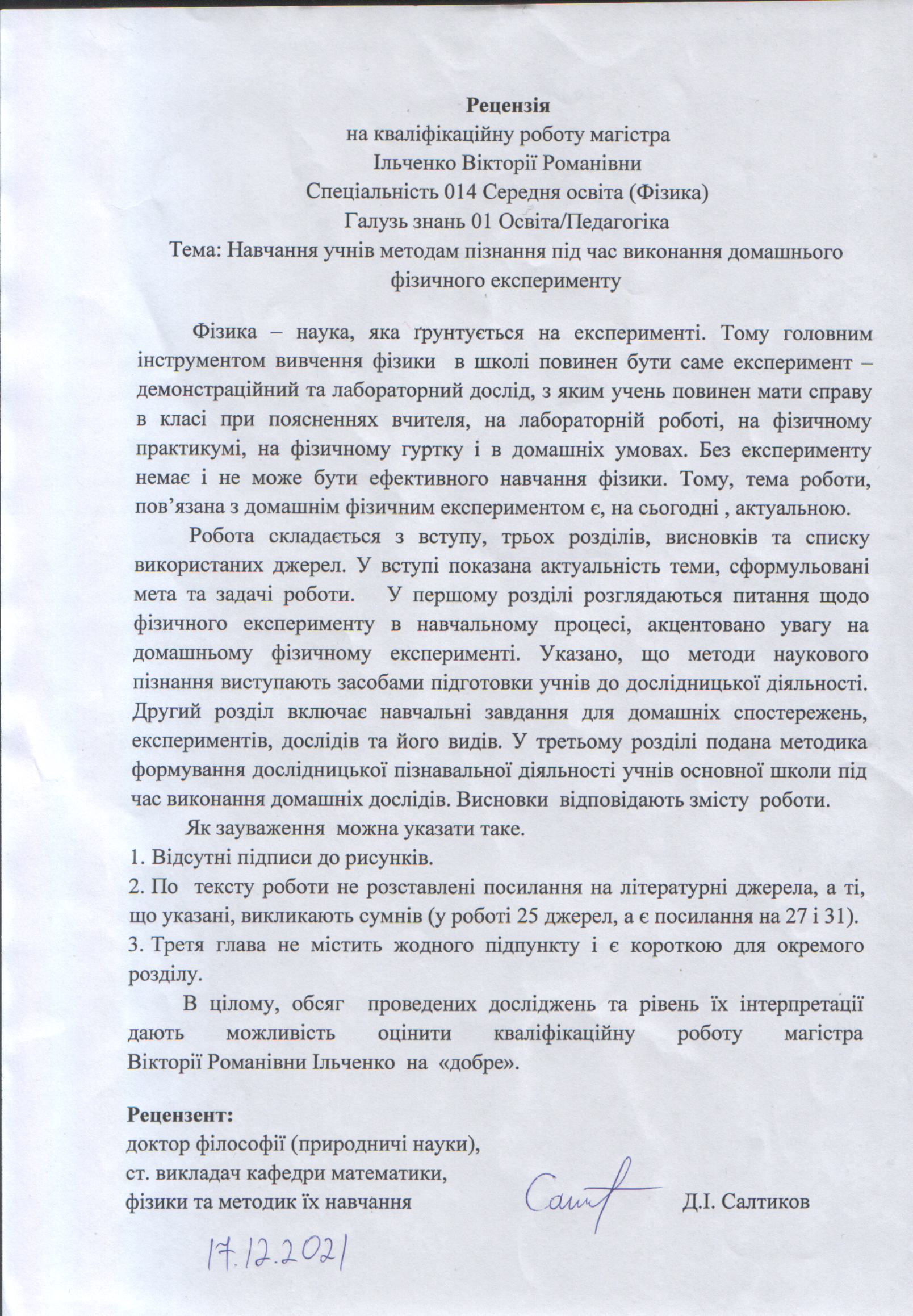Ільченко, В. Р. Навчання учнів методам пізнання під час виконання домашнього фізичного експерименту [Текст] : магістер. робота / В. Р. Ільченко ; науковий керівник М. В.Каленик. – Суми : СумДПУ ім. А. С. Макаренка, 2021. – 70 с.
