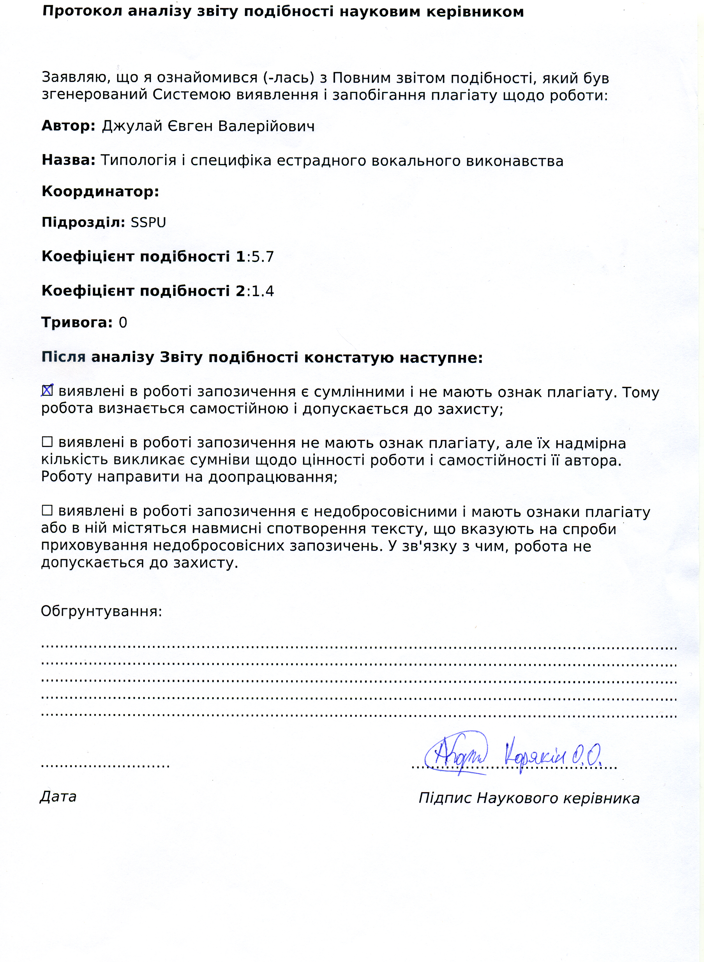 Джулай, Є. В. Типологія і специфіка естрадного вокального виконавства [Текст] : магістер. робота / Є. В. Джулай ; науковий керівник О. О. Корякін. – Суми : СумДПУ ім. А. С. Макаренка, 2020. – 64 с.
