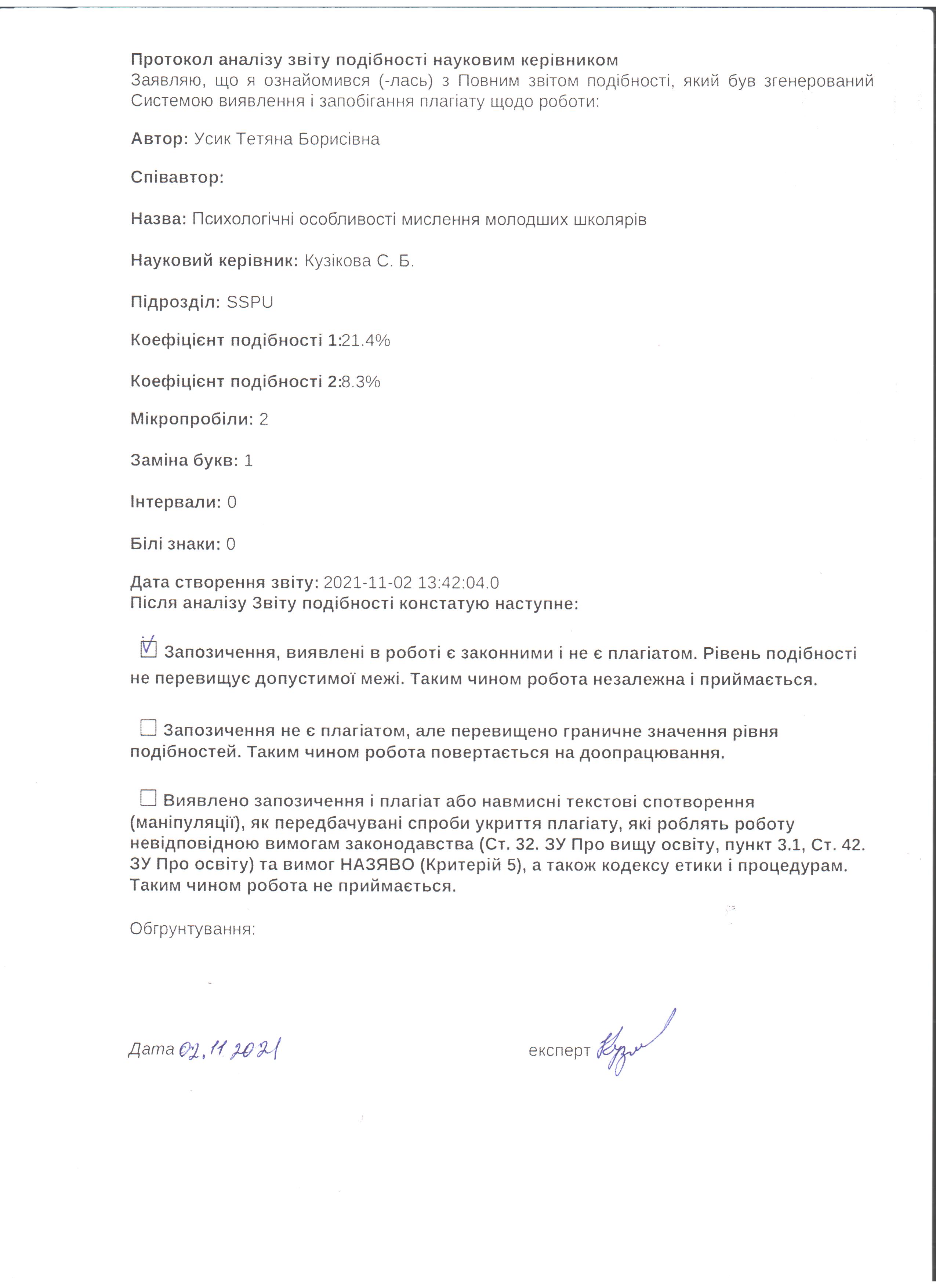 Усик Т. Б. Психологічні особливості мислення молодших школярів [Текст] : кваліфікаційна робота на здобуття освітнього ступеня магістр / Т. Б. Усик, науковий керівник.С. Б. Кузікова. – Суми : СумДПУ ім. А. С. Макаренка, 2021. – 94 с.