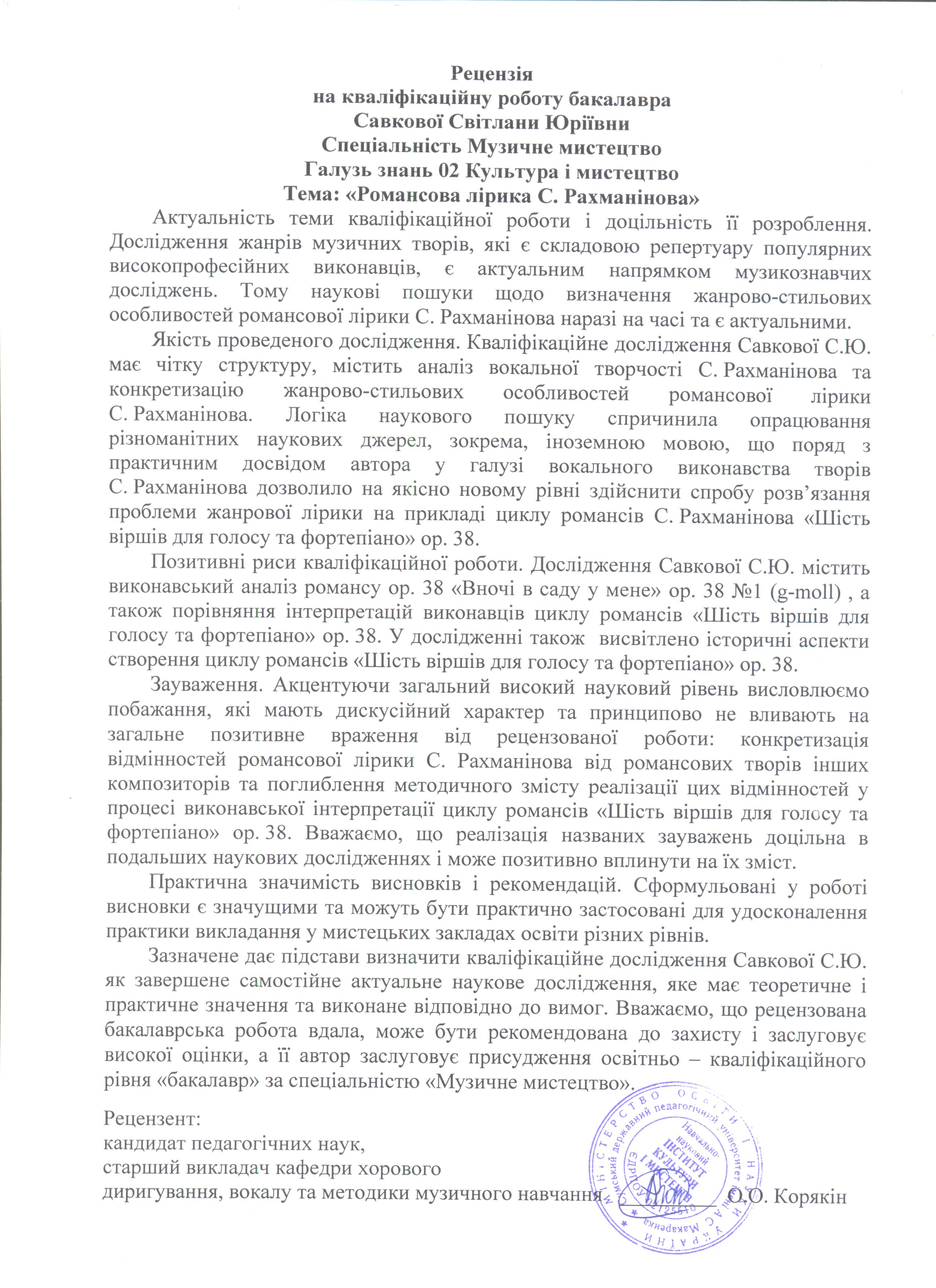 Савкова, С. Ю. Вокальна лірика у творчості С. Рахманінова [Текст] : бакалавр. робота / С. Ю. Савкова ; науковий керівник Л. А. Бірюкова. – Суми : СумДПУ ім. А. С. Макаренка, 2021. – 86 с.