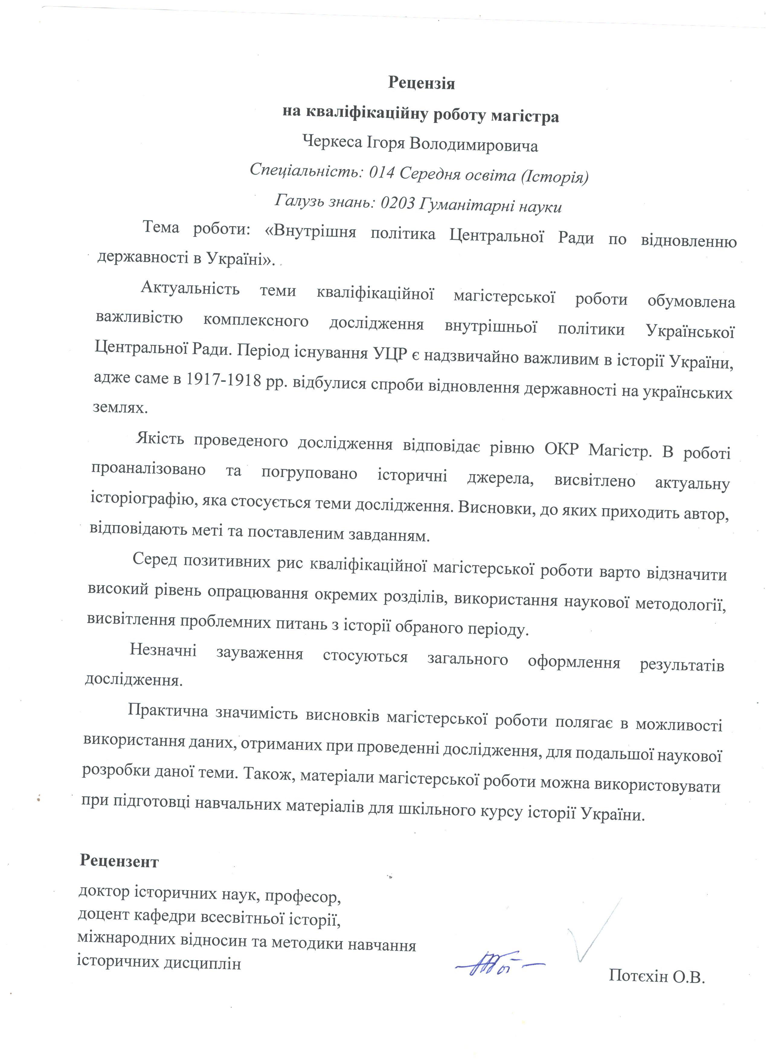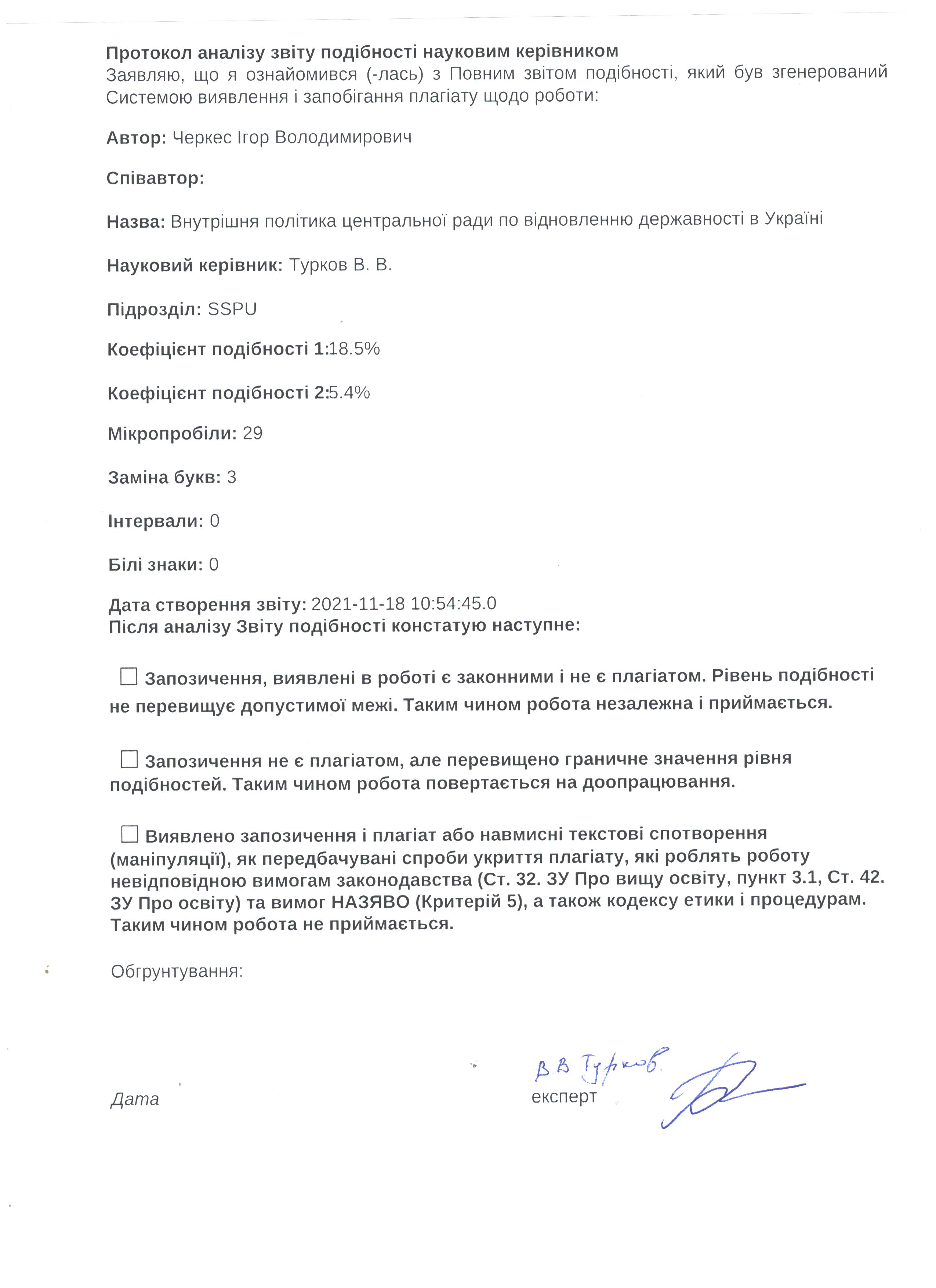 Черкес, І. В. Внутрішня політика Центральної Ради по відновленню державності в Україні [Текст] : магістер. робота / І. В. Черкес ; науковий керівник В. В. Турков. – Суми : СумДПУ ім. А. С. Макаренка, 2021. – 63 с.