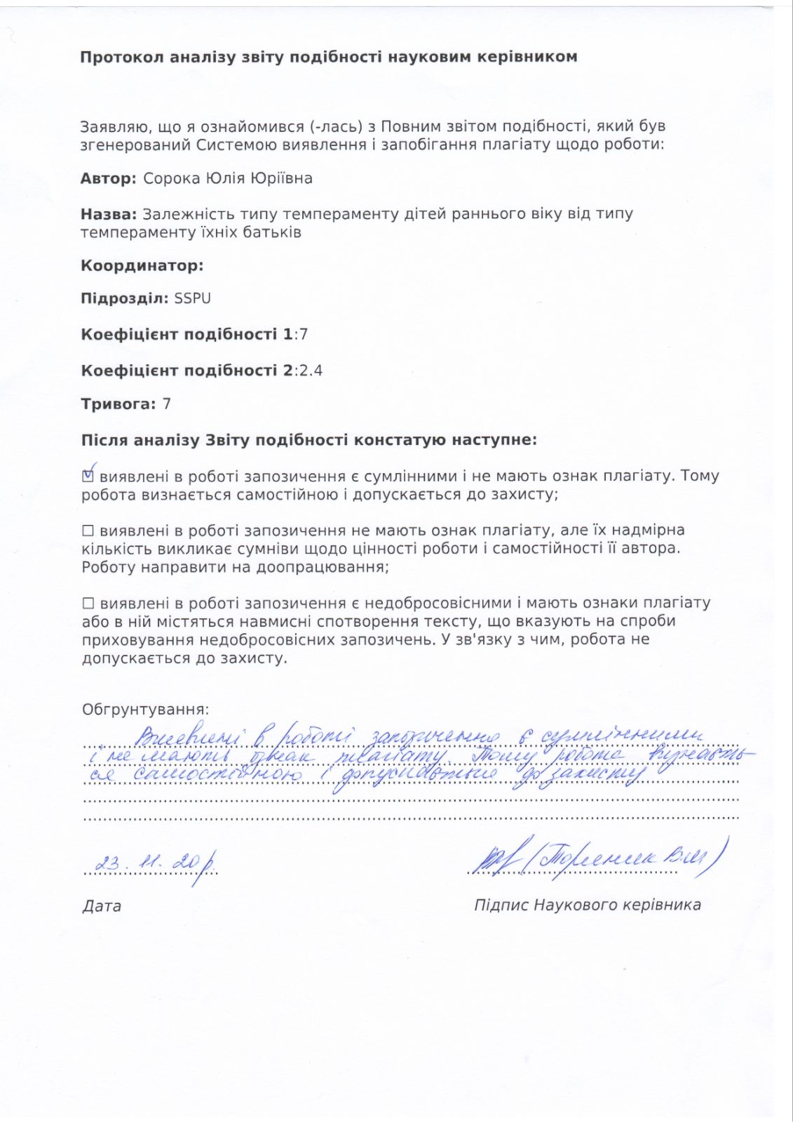 Сорока, Ю. Ю. Залежність типу темпераменту дітей раннього віку від типу темпераменту їхніх батьків [Текст] : магістер. робота / Ю. Ю. Сорока ; науковий керівник В. М. Торяник. – Суми : СумДПУ ім. А. С. Макаренка, 2020. – 56 с.