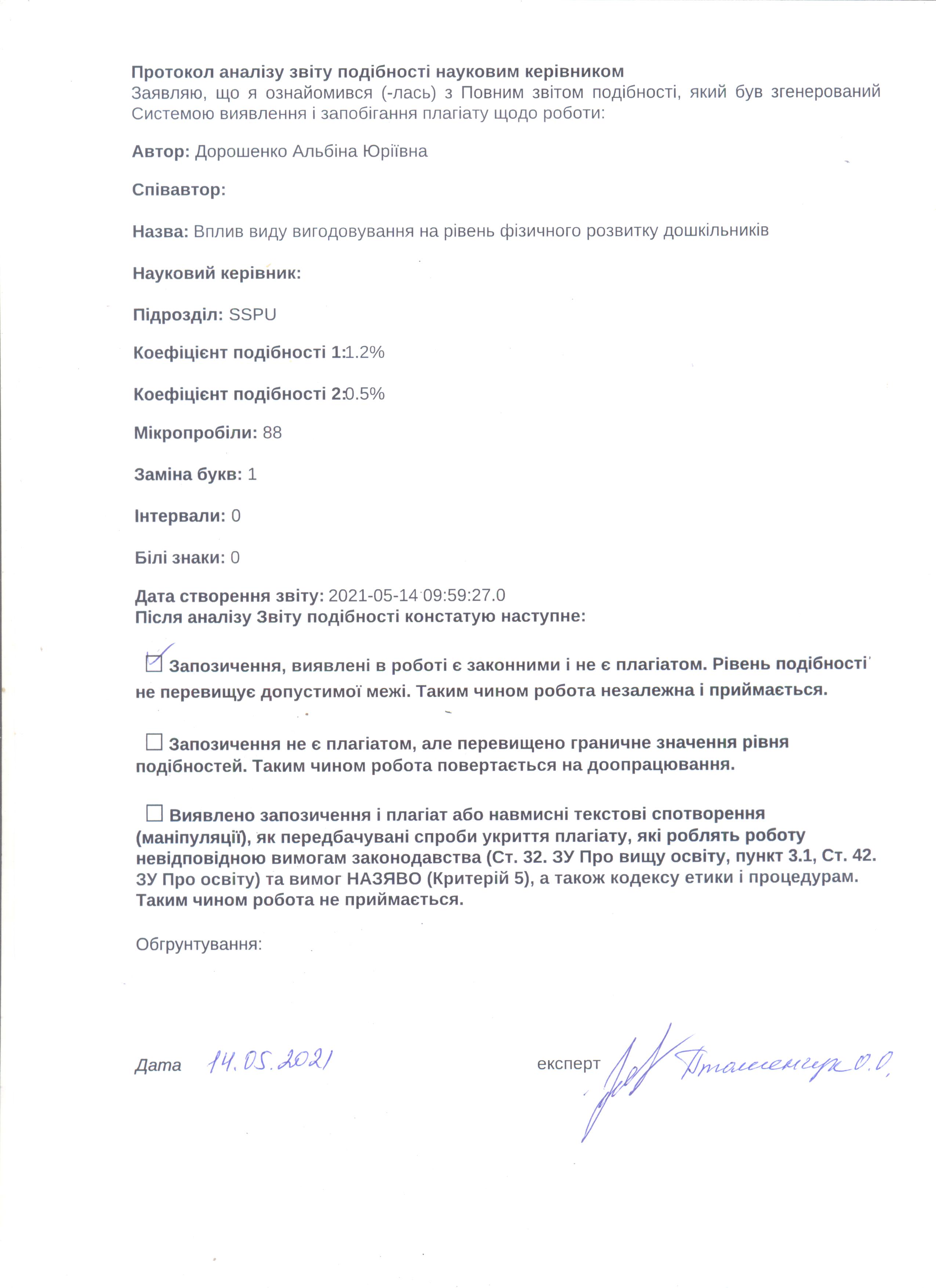 Дорошенко, А. Ю. Вплив виду вигодовування на рівень фізичного розвитку дошкільників [Текст] : бакалавр. робота / А. Ю. Дорошенко ; науковий керівник О. О. Пташенчук. – Суми : СумДПУ ім. А. С. Макаренка, 2021. – 38 с.