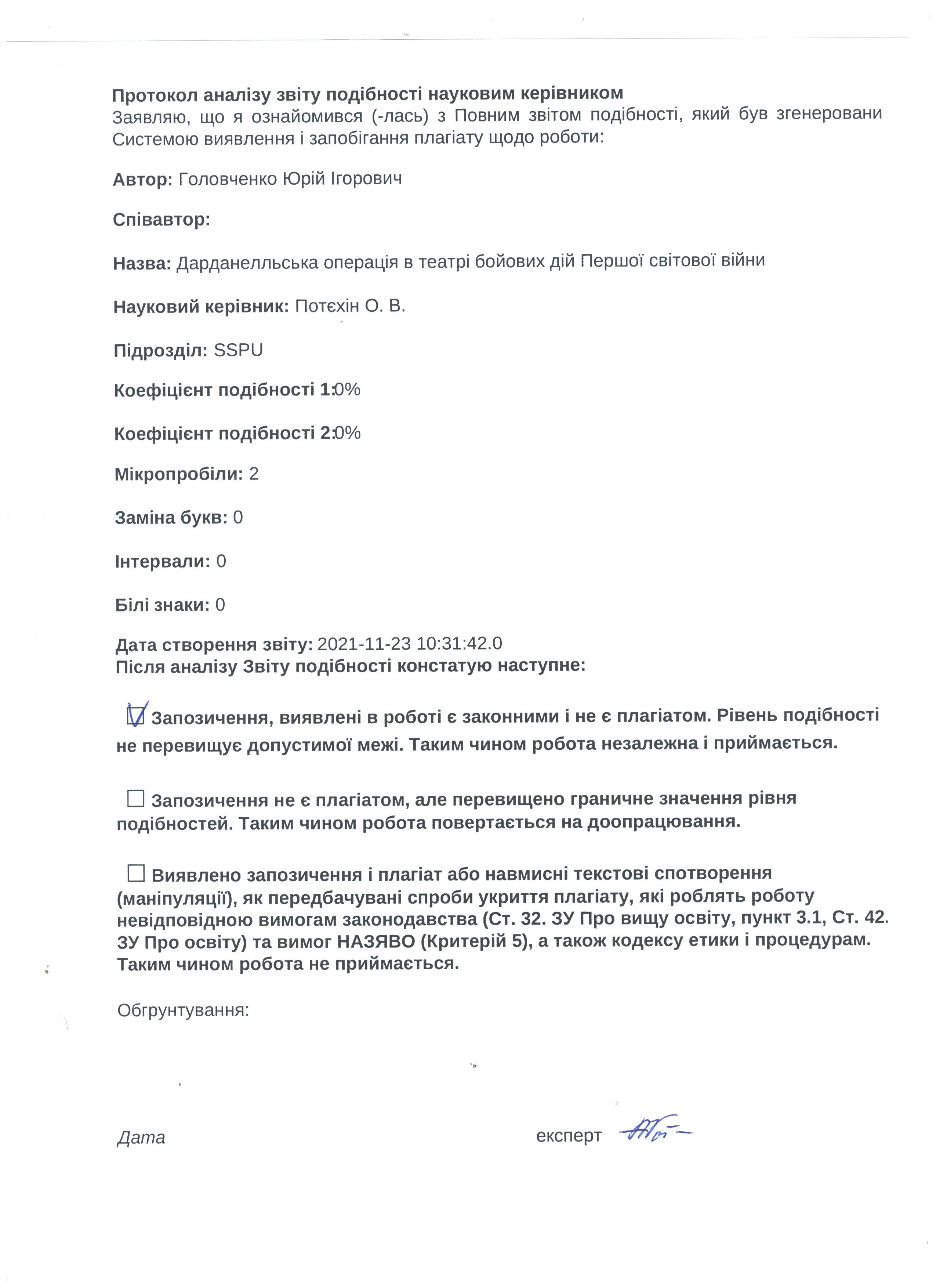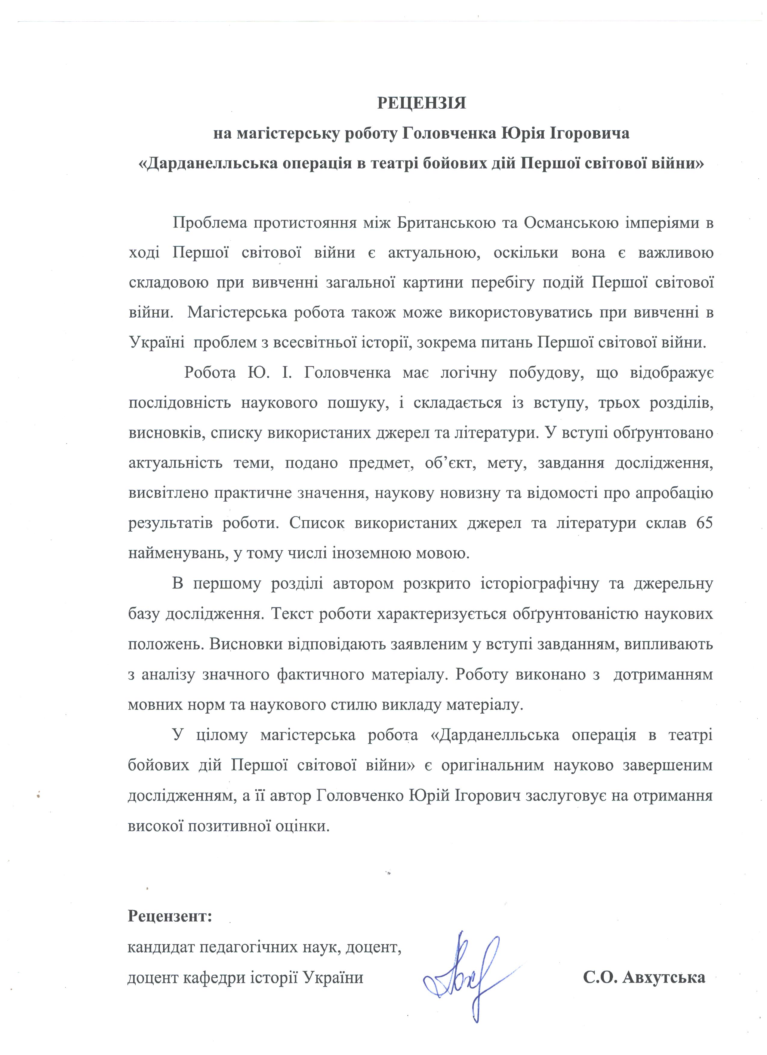 Головченко, Ю. І. Дарданелльська операція в театрі бойових дій Першої світової війни [Текст] : магістер. робота / Ю. І. Головченко ; науковий керівник О. В. Потєхін. – Суми : СумДПУ ім. А. С. Макаренка, 2021. – 71 с.