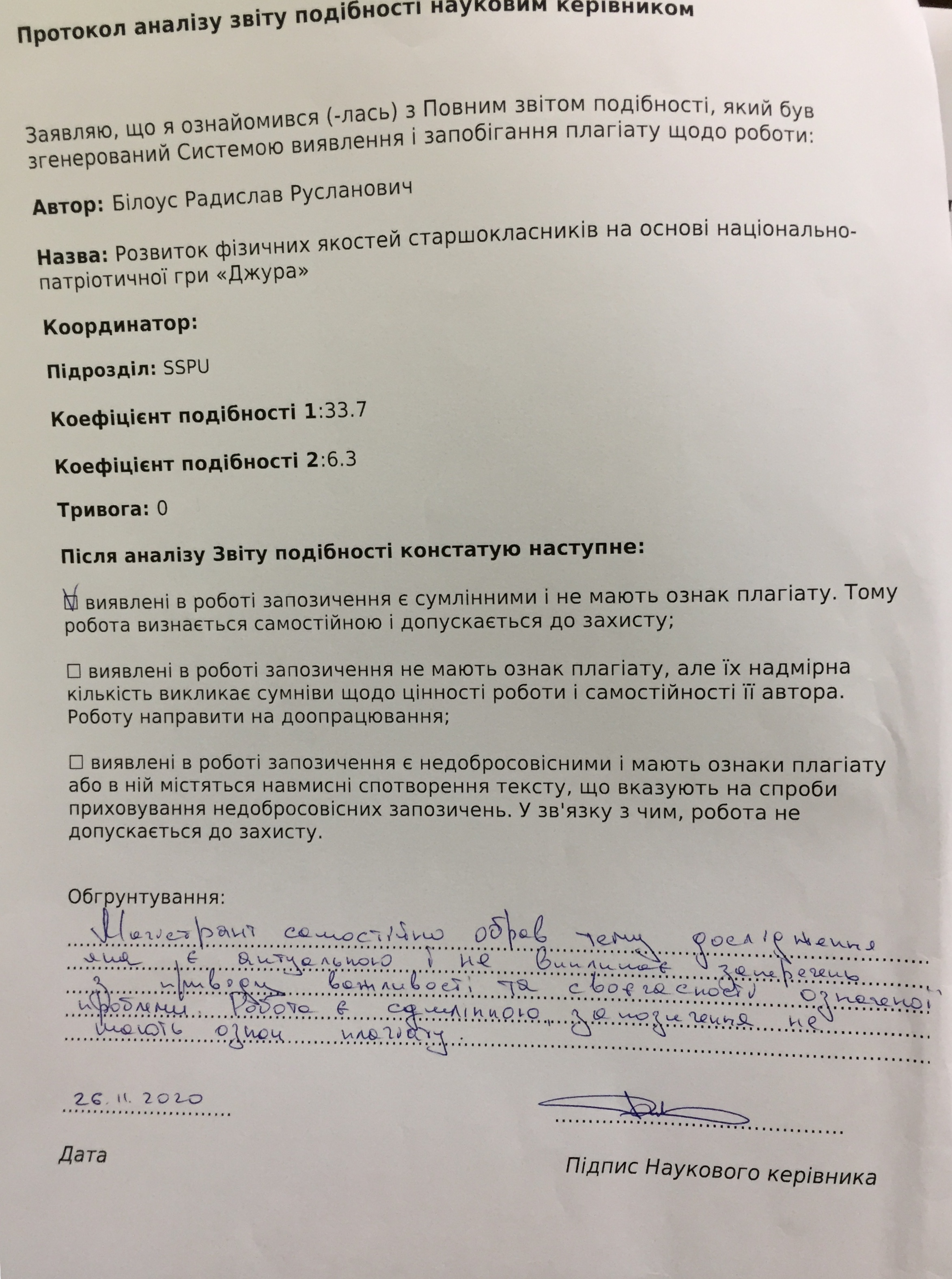 Білоус, Р. Р. Розвиток фізичних якостей старшокласників на основі національно-патріотичної гри «Джура» [Текст] : магістер. робота / Р. Р. Білоус ; науковий керівник А. В. Леоненко. – Суми : СумДПУ ім. А. С. Макаренка, 2020. – 58 с.