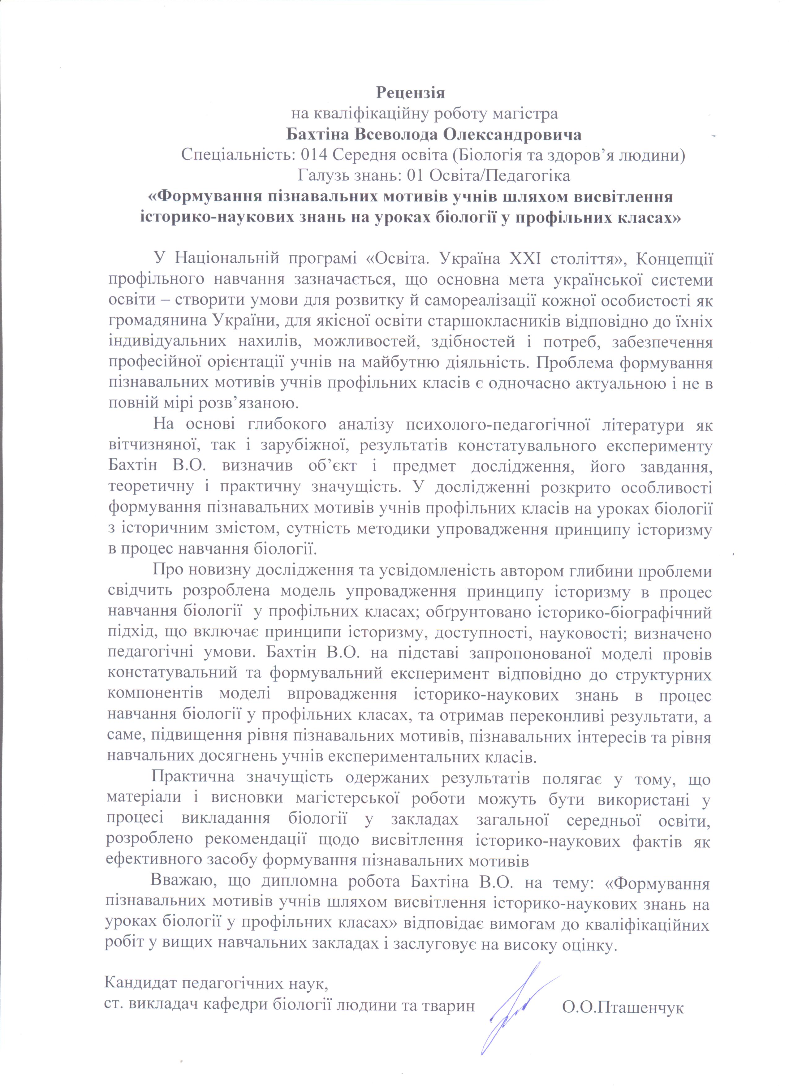Бахтін, В. О. Формування пізнавальних мотивів учнів шляхом висвітлення історико-наукових знань на уроках біології у профільних класах [Текст] : магістер. робота / В. О. Бахтін ; науковий керівник С. Е. Генкал. – Суми : СумДПУ ім. А. С. Макаренка, 2020. – 81 с.