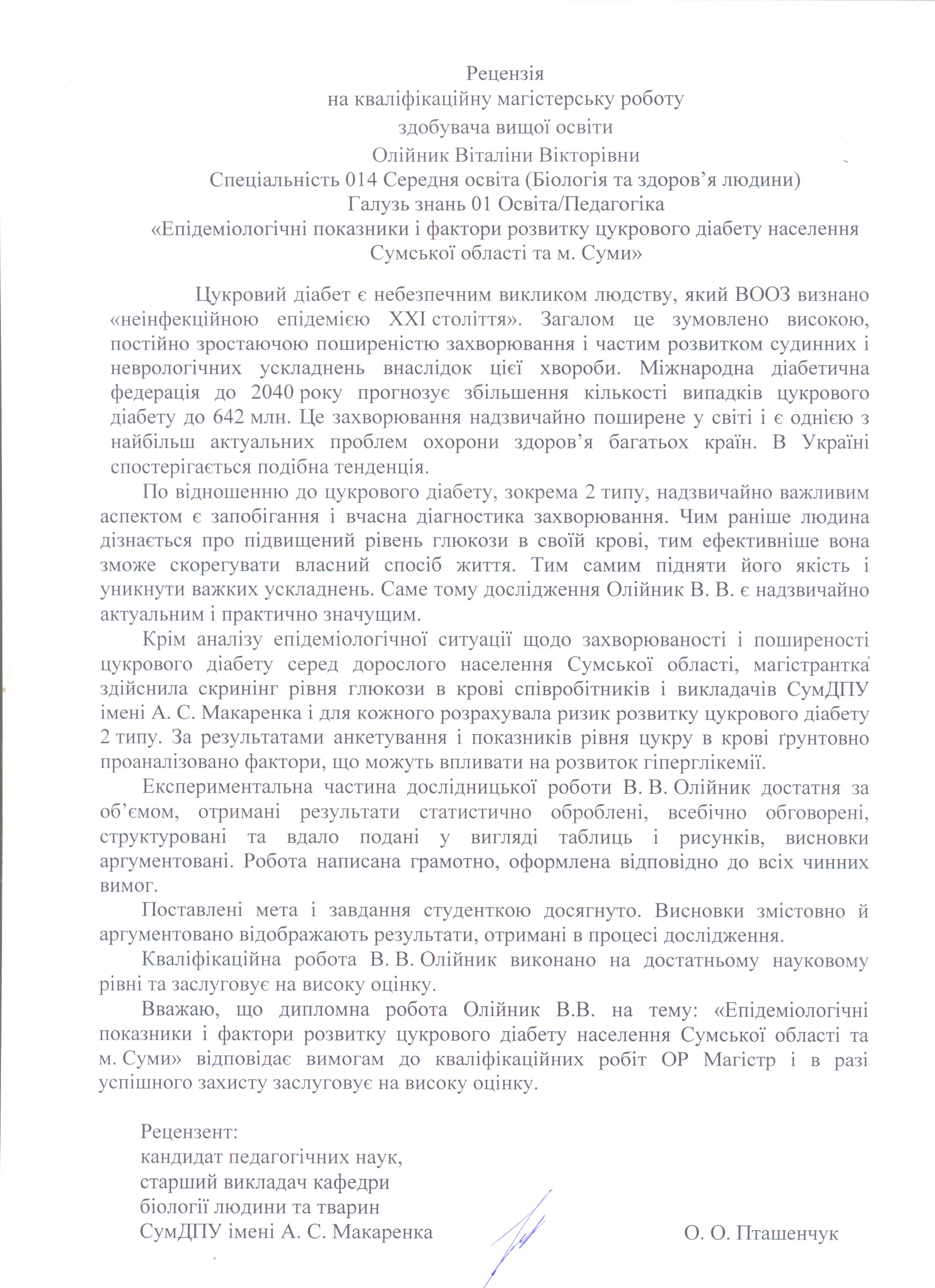 Олійник, В. В. Епідеміологічні показники і фактори розвитку цукрового діабету населення Сумської області та м. Суми [Текст] : магістер. робота / В. В. Олійник ; науковий керівник О. В. Говорун. – Суми : СумДПУ ім. А. С. Макаренка, 2020. – 61 с.