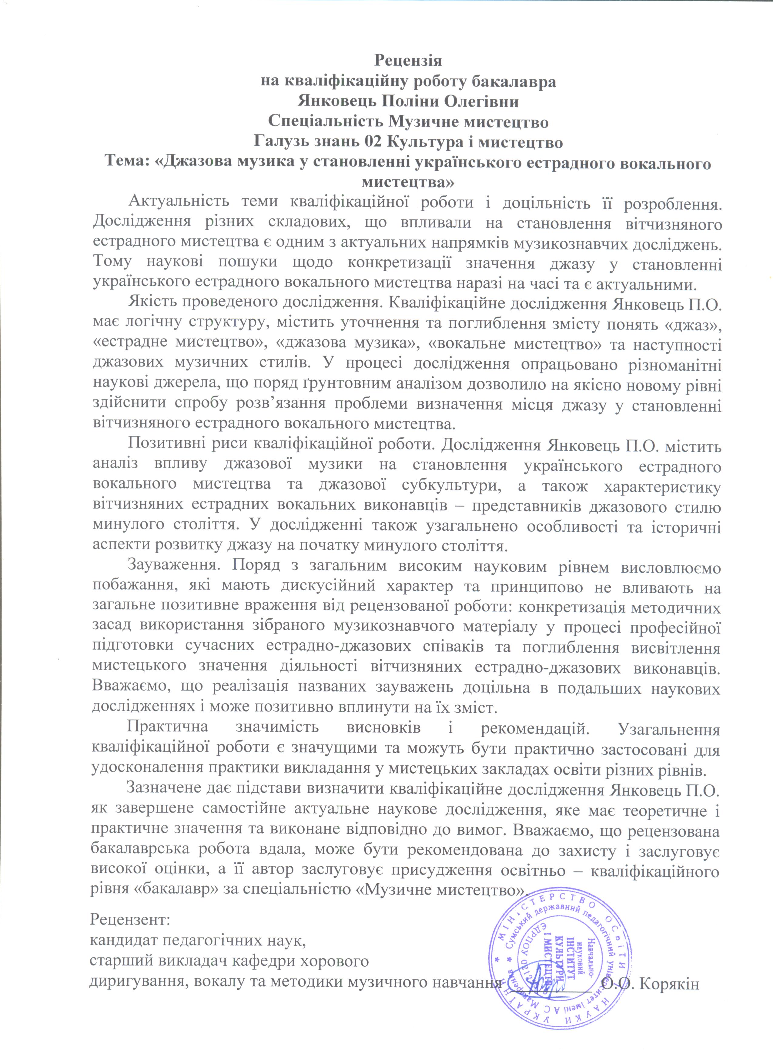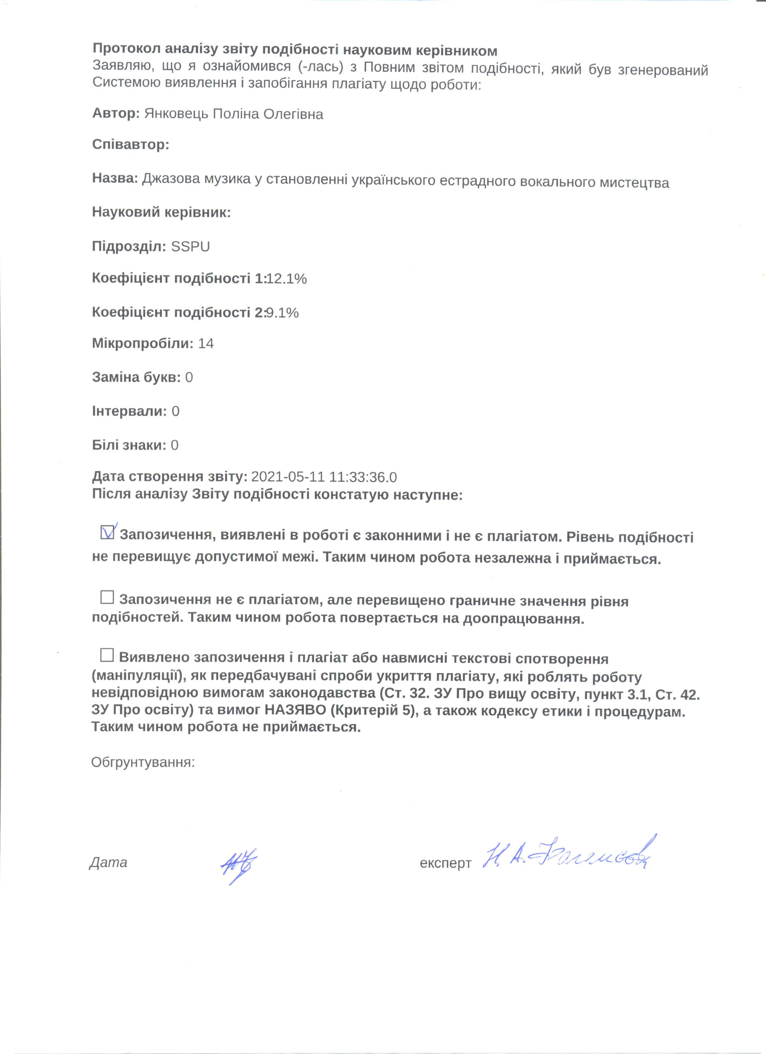 Янковець, П. О. Джазова музика у становленні українського естрадного вокального мистецтва [Текст] : бакалавр. робота / П. О. Янковець ; науковий керівник Н. А. Фоломєєва. – Суми : СумДПУ ім. А. С. Макаренка, 2021. – 63 с.