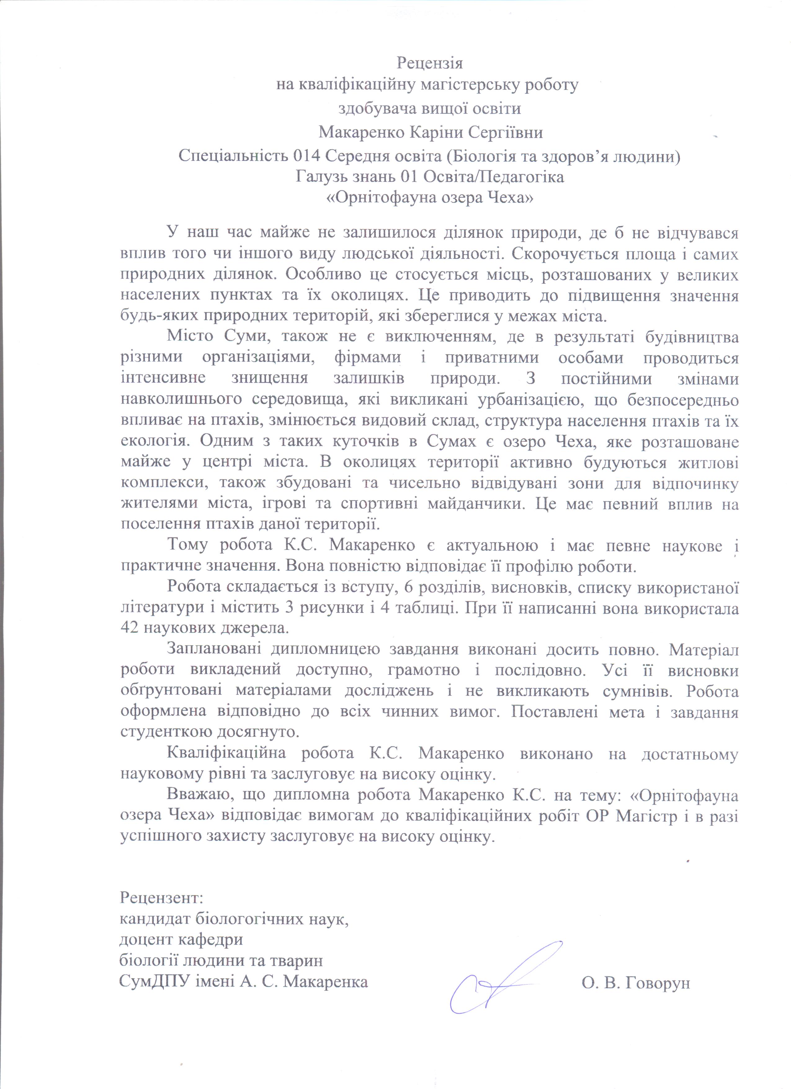 Макаренко, К. С. Орнітофауна озера Чеха [Текст] : магістер. робота / К. С. Макаренко ; науковий керівник І. Р. Мерзлікін. – Суми : СумДПУ ім. А. С. Макаренка, 2020. – 75 с.