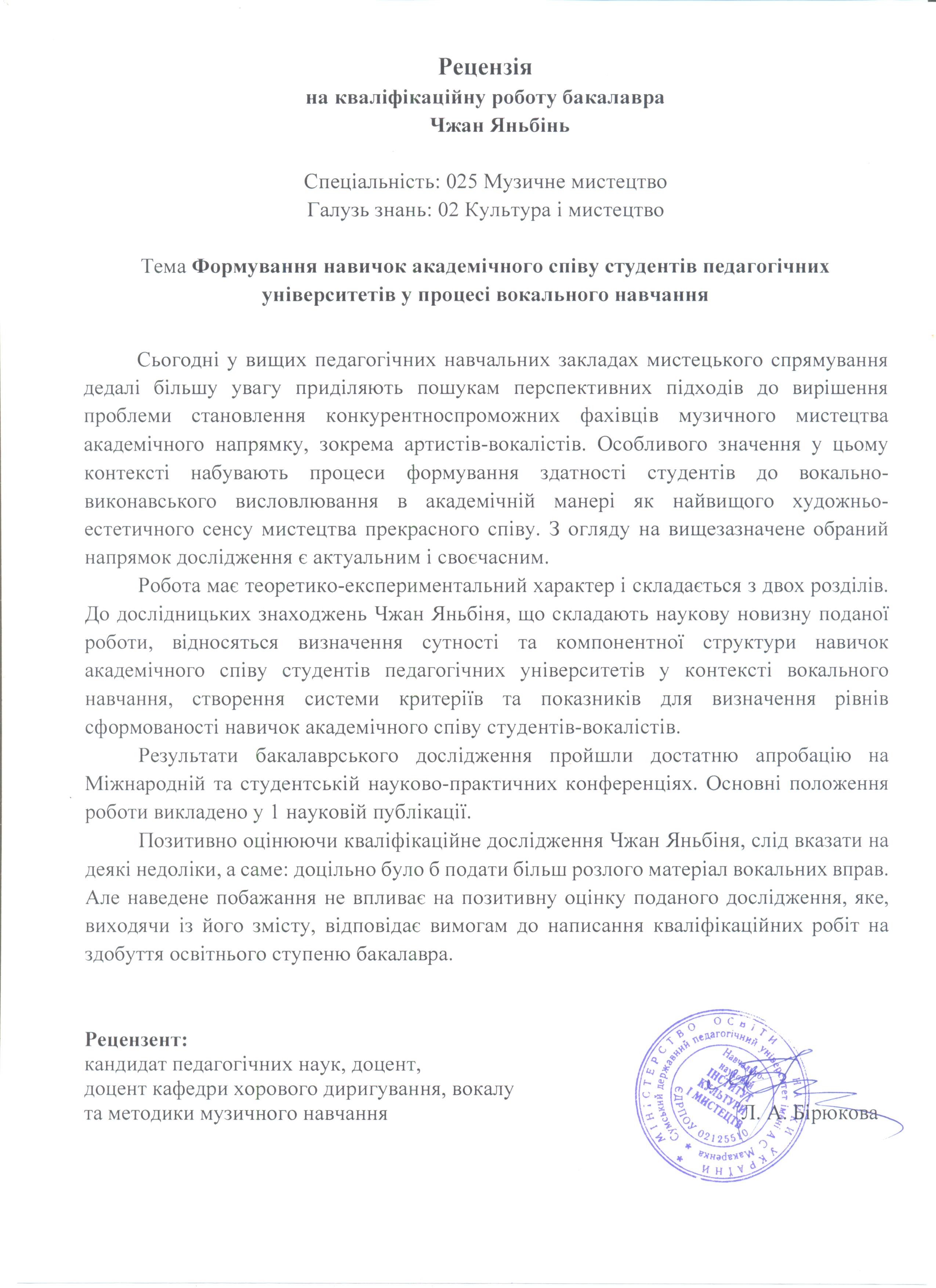 Чжан Яньбінь Формування навичок академічного співу студентів педагогічних університетів у процесі вокального навчання [Текст] : бакалавр. робота / Чжан Яньбінь ; науковий керівник М. Б. Петренко. – Суми : СумДПУ ім. А. С. Макаренка, 2021. – 52 с.