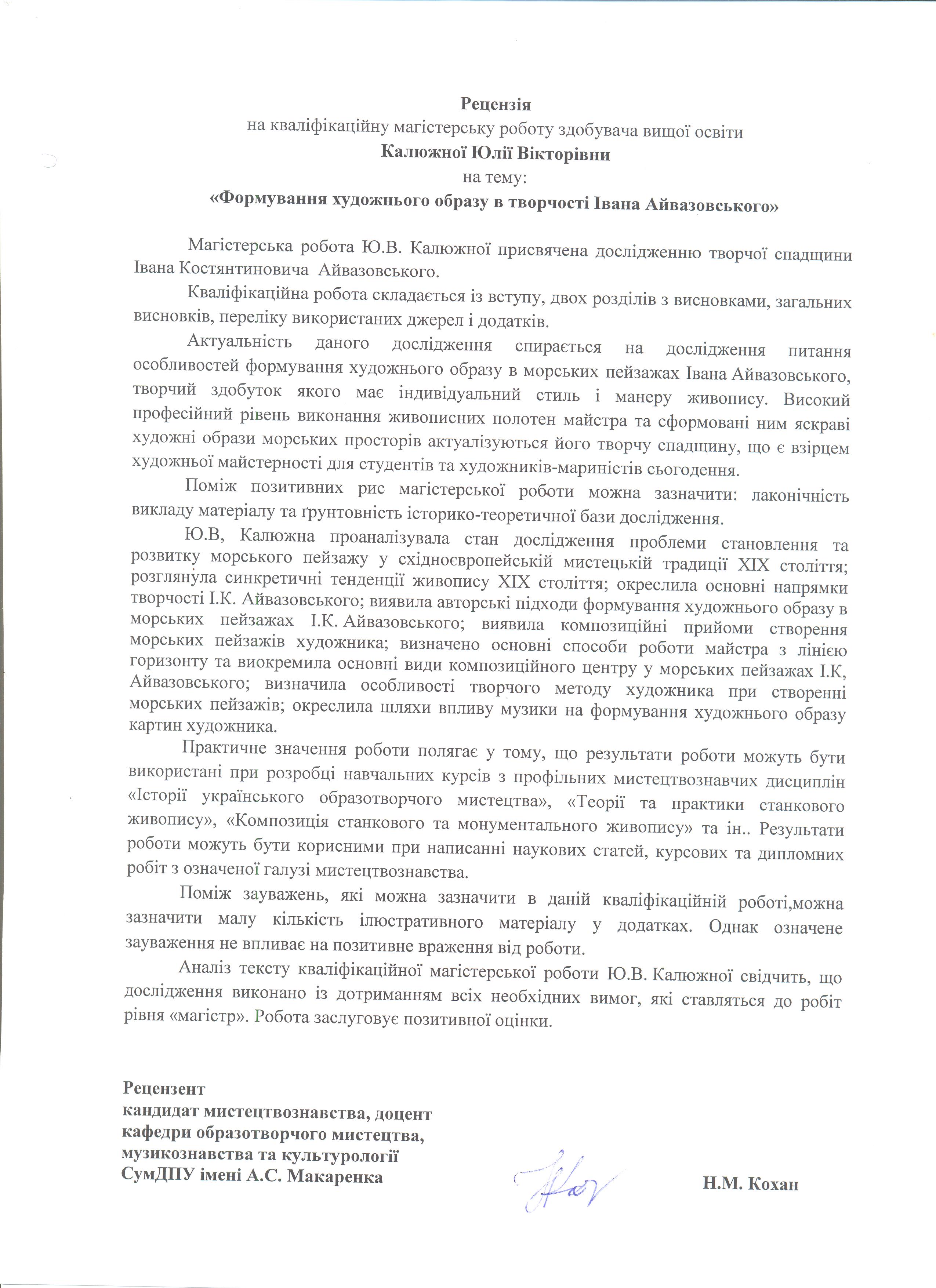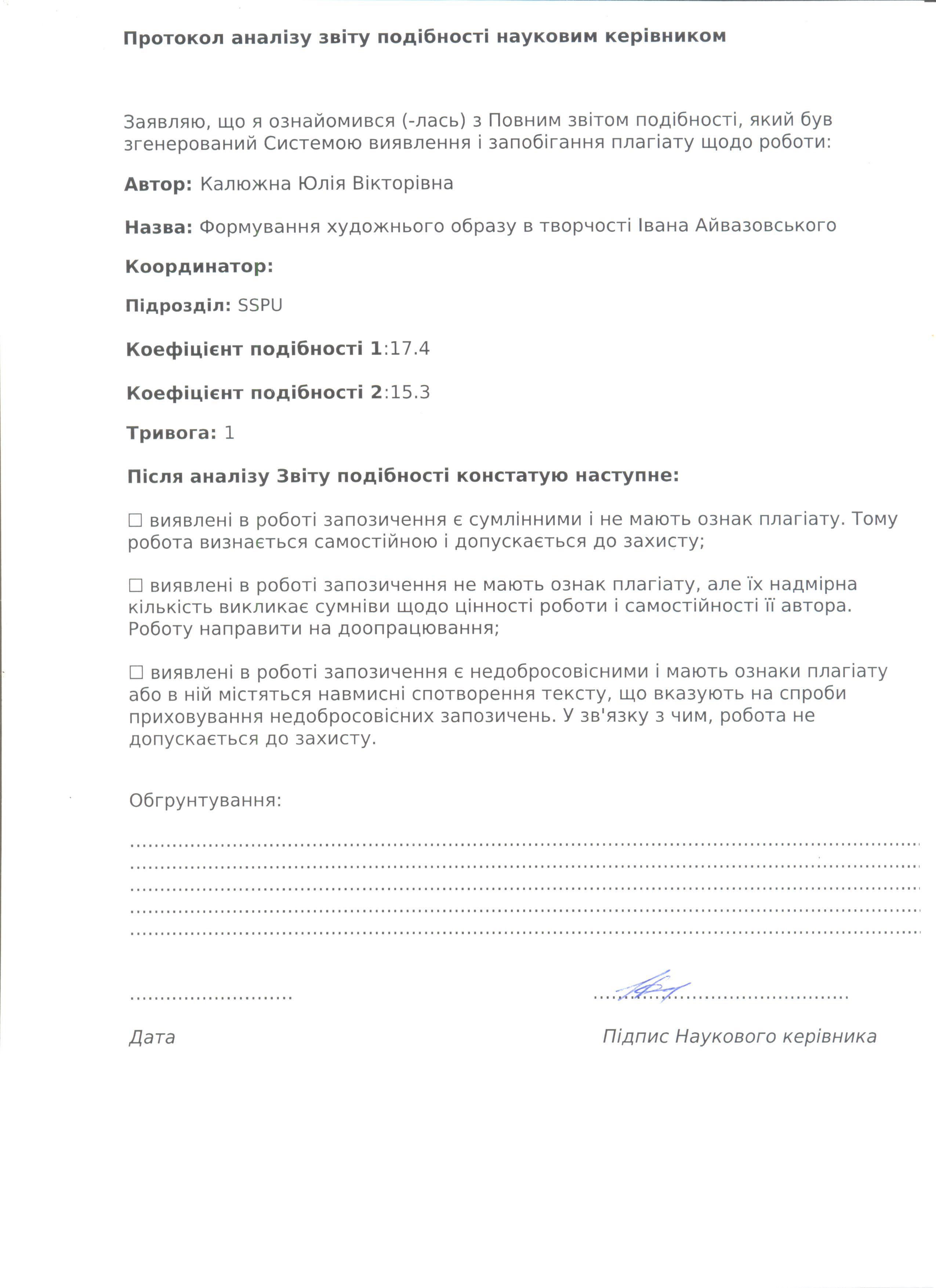 Калюжна, Ю. В. Формування художнього образу в творчості Івана Айвазовського [Текст] : магістер. робота / Ю. В. Калюжна ; науковий керівник Н. С. Брижаченко. – Суми : СумДПУ ім. А. С. Макаренка, 2020. – 64 с.