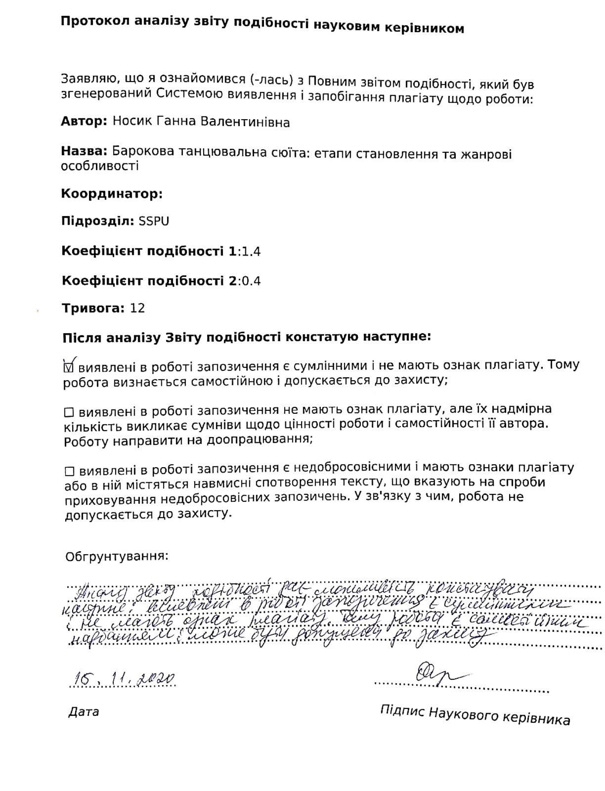 Носик, Г. В. Барокова танцювальна сюїта: етапи становлення та жанрові особливості [Текст] : магістер. робота / Г. В. Носик ; науковий керівник О. В. Єременко. – Суми : СумДПУ ім. А. С. Макаренка, 2020. – 68 с.