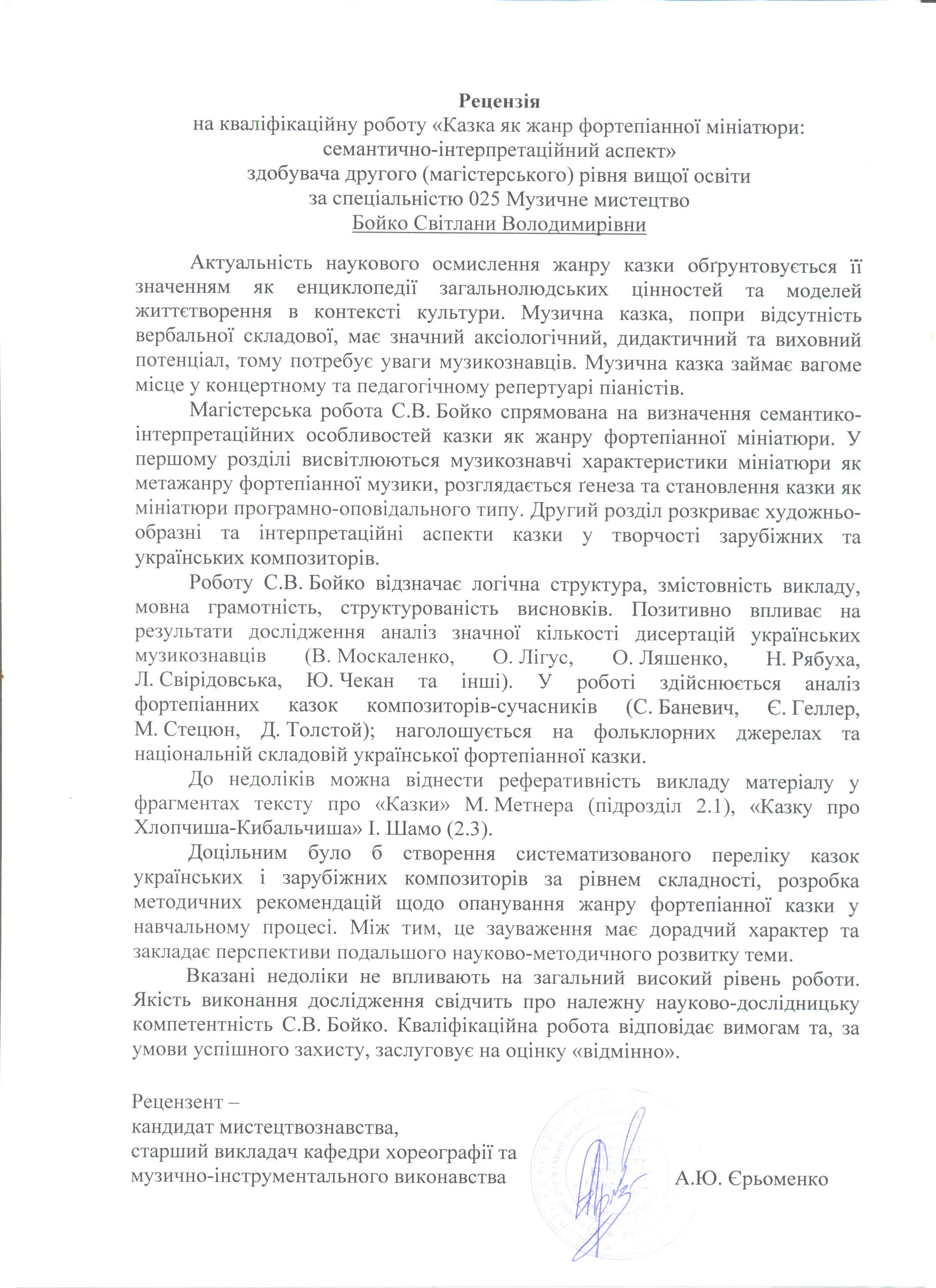 Бойко, С. В. Казка як жанр фортепіанної мініатюри: семантично-інтерпретаційний аспект [Текст] : магістер. робота / С. В. Бойко ; науковий керівник Л. Г. Тарапата-Більченко. – Суми : СумДПУ ім. А. С. Макаренка, 2020. – 75 с.