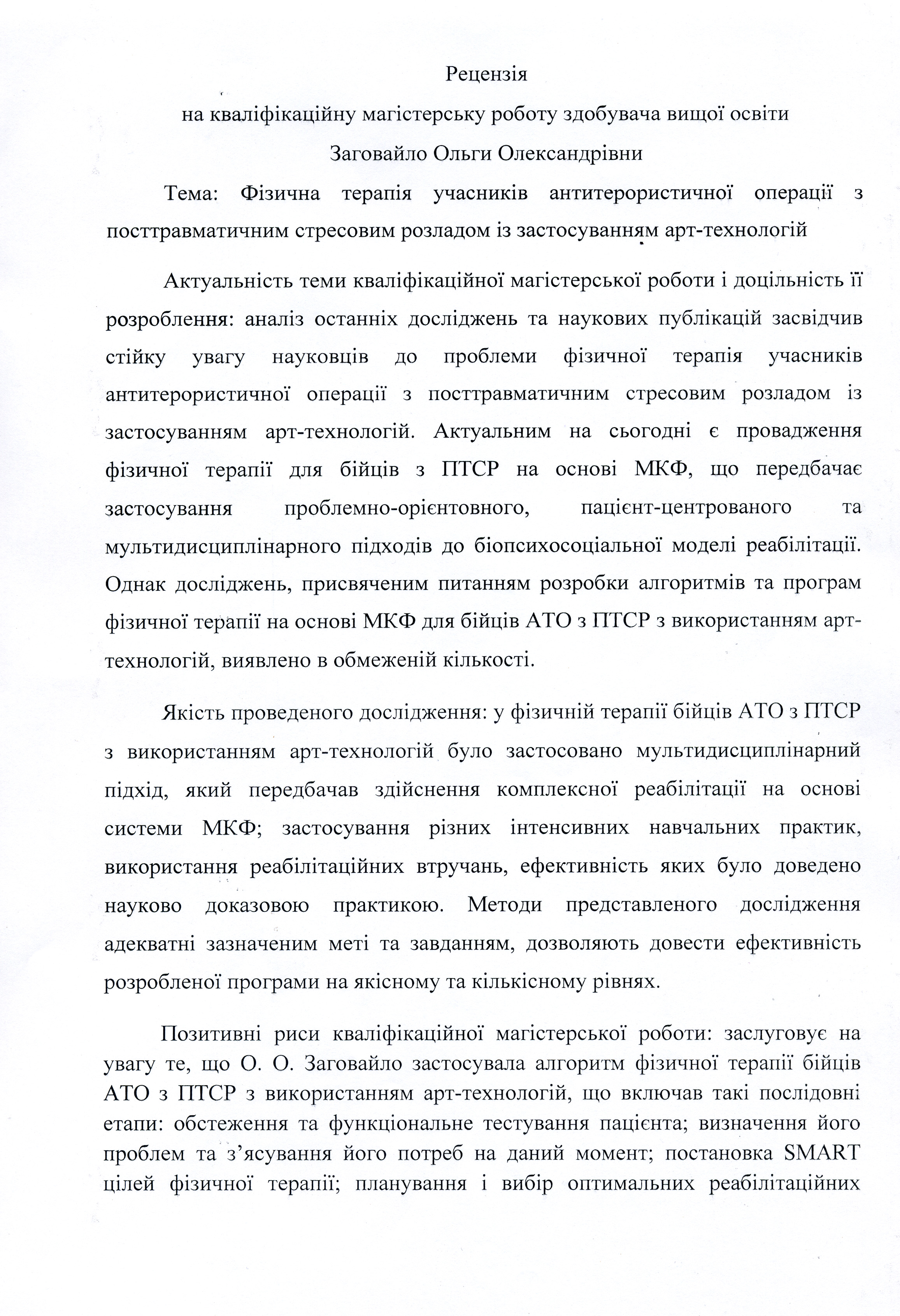 Заговайло, О. О. Фізична терапія бійців АТО з посттравматичним стресовим розладом із застосуванням арт-технологій [Текст] : магістер. робота / О. О. Заговайло ; науковий керівник В. А. Литвиненко. – Суми : СумДПУ ім. А. С. Макаренка, 2020. – 71 с.